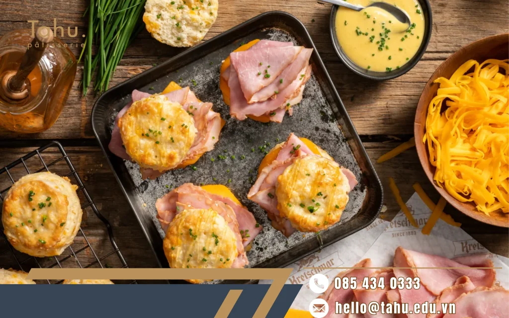 Không thể thiếu những món mặn vừa miệng, dễ ăn như Mini Sandwich, Mini Burger hay Ham Cheese Salted Biscuits – tất cả đều nhỏ nhắn, gọn gàng, phù hợp với hình thức tiệc đứng, không cầu kỳ trong cách thưởng thức. Nếu muốn một chút phá cách, bạn có thể thử Tuna Cheese Canape hay Croissant mặn – nhẹ bụng nhưng vẫn đủ no cho một buổi gặp gỡ kéo dài.